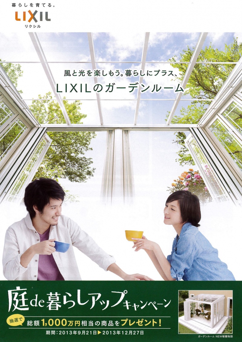 2013年9月21日からLIXILのガーデンルームやテラスなどご採用されたお客様に対して素敵なプレゼントが抽選でもらえるキャンペーンが始まります。 詳...