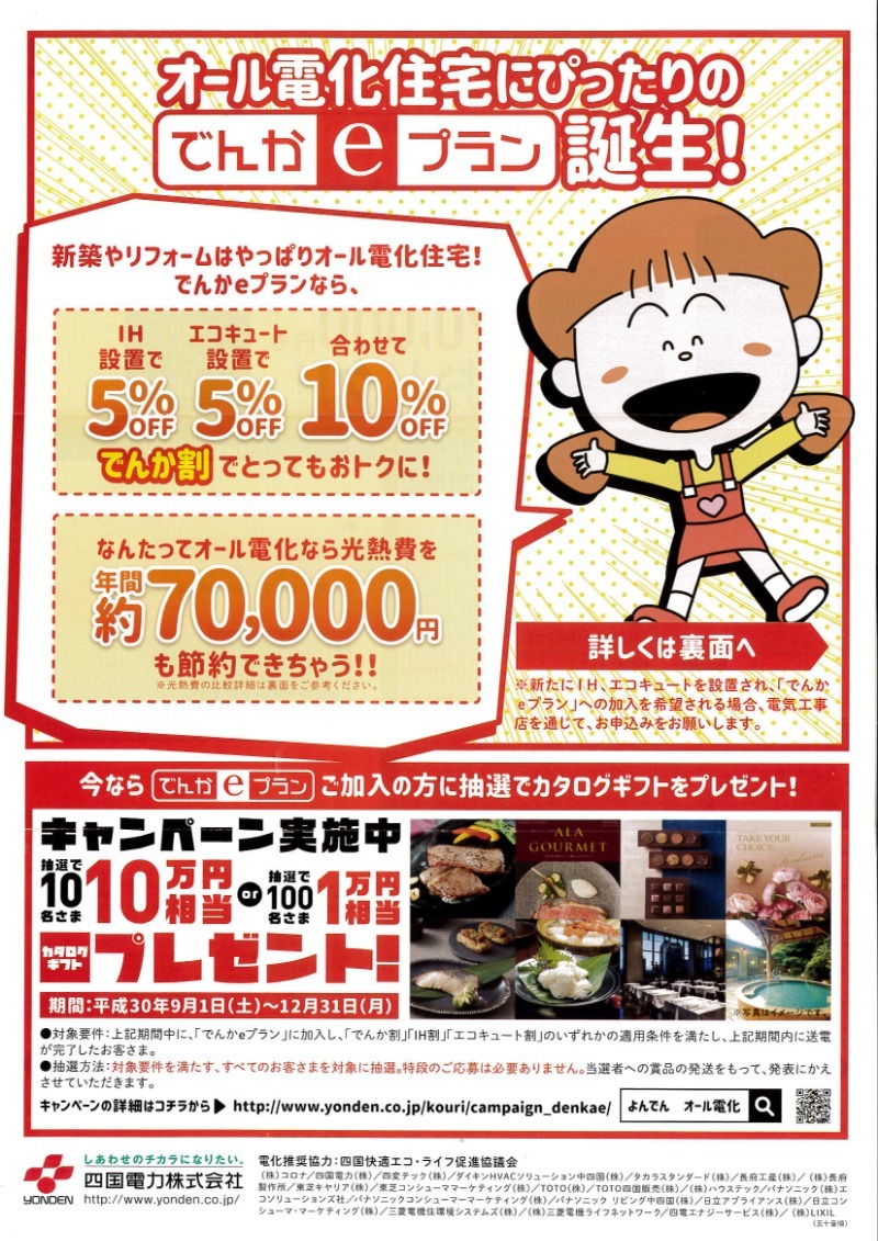 オール電化住宅にぴったりのでんかeプラン誕生 キャンペーン実施中〜12/31