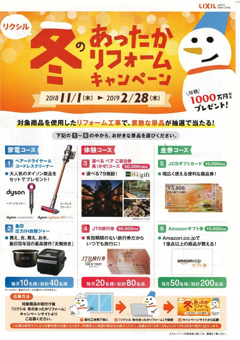 昨年も好評でした、冬のあったかリフォームキャンペーン!! 10月から始まります。 ■期間:10/1(火)〜2/29(土) ■対象商品:インプラス、リシ...