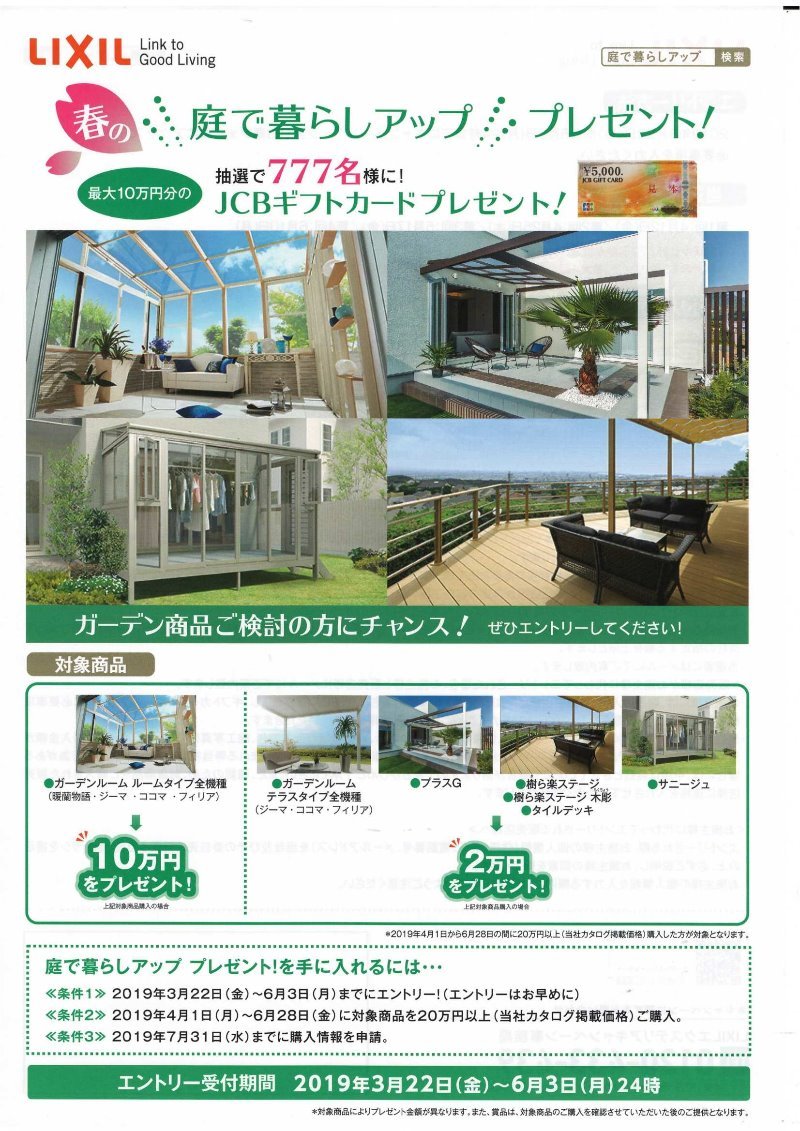 ガーデン商品 ご検討の方にチャンスです。 テラス囲い・人口木デッキなど、対象となってます。 2019年3月22日(金)〜エントリー受付開始です。 以前...