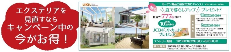 LIXILより 春の ‐ 庭で暮らしアップ ‐ プレゼント というエクステリアキャンペーンが開催中です。 【キャンペーン概要】 キャンペーン期間中にエ...