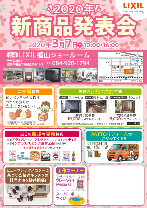3月7日(土)10:00~16:00 LIXIL福山ショールームにて 新商品発表会が開催されます ショールーム内の商品を一新し キッチンやバスルーム・...