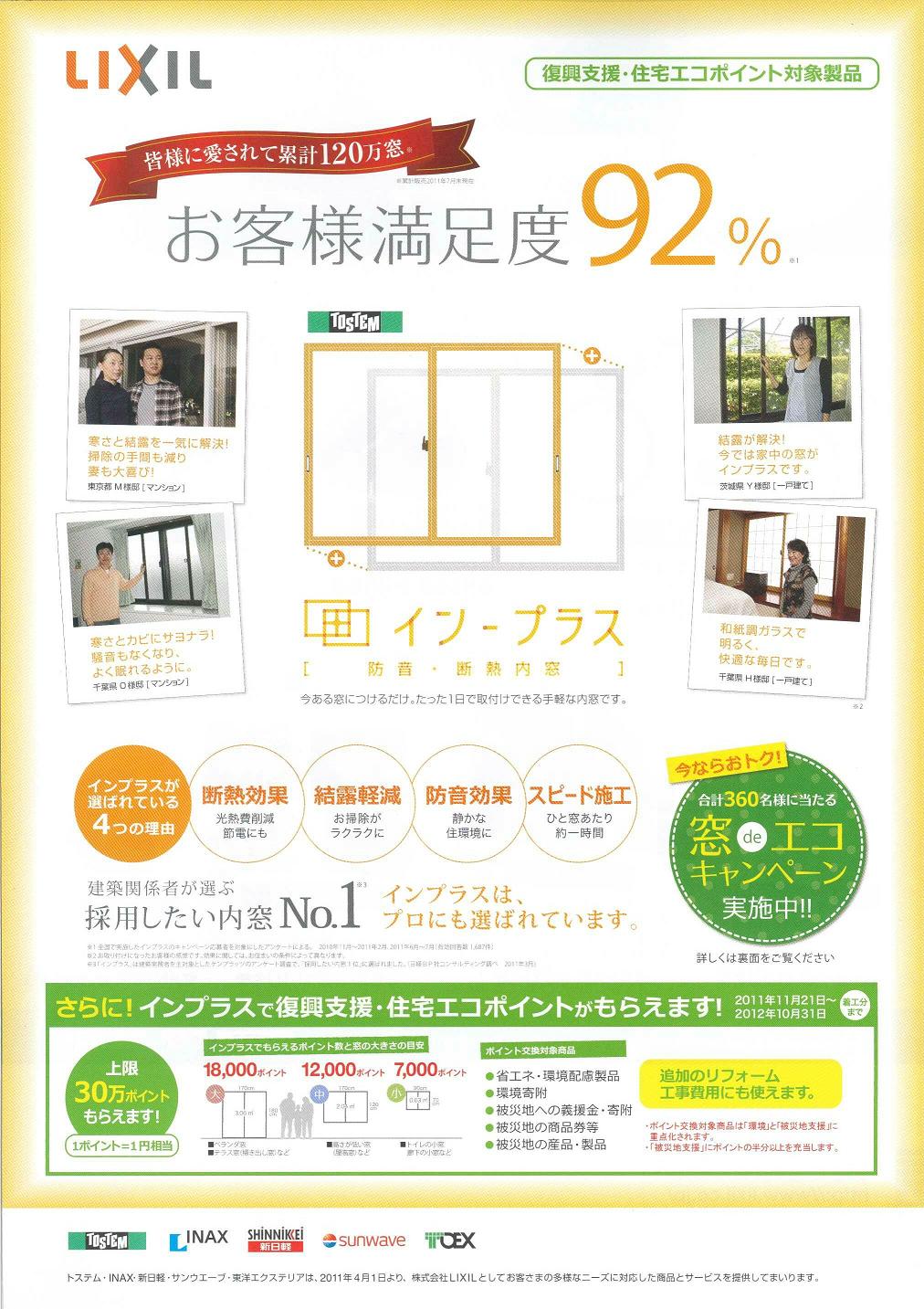 お客さま満足度92% 内窓「インプラス」キャンペーン 2023年1月末までのご注文で インプラス4セット取付ければ1セットプレゼントでもらえちゃう♪ ...
