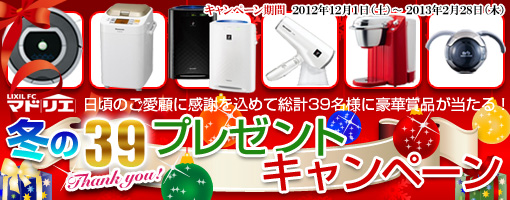 期間中、サティスをご購入のお客様に抽選で素敵なプレゼント *リフォーム物件が対象です。 キャンペーン期間 2012年1月5日〜2012年3月31...