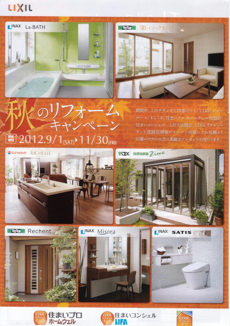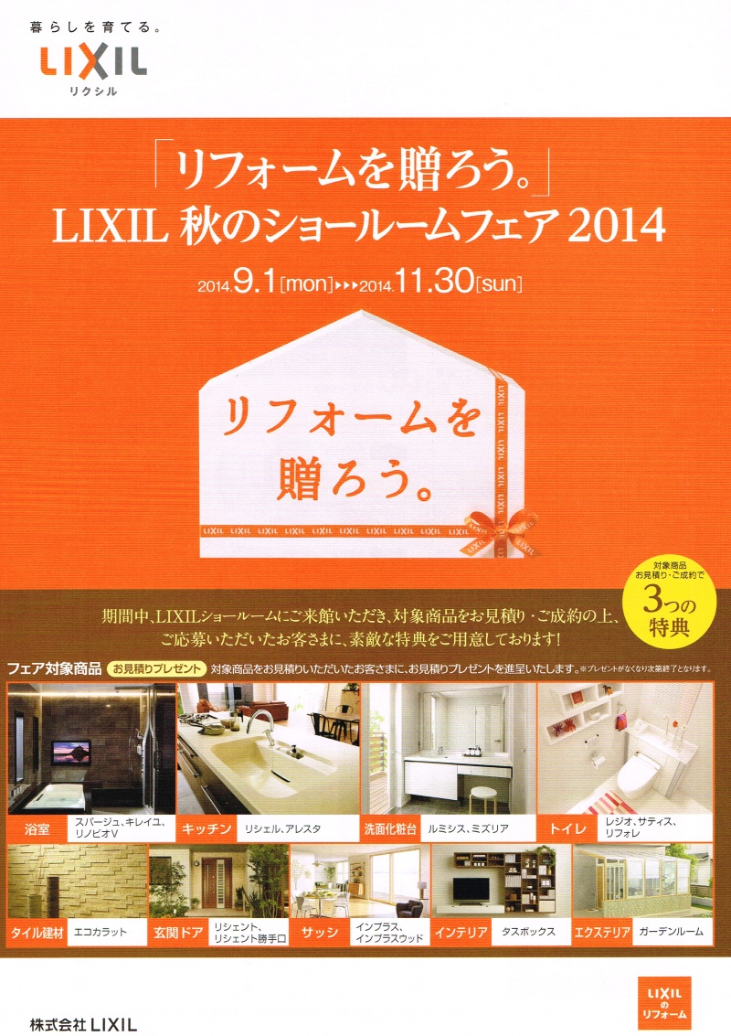 リクシル 秋のショールームフェア 2014 9/01から11/30まで 今年もショールームにて開催されます。 リフォームをお...