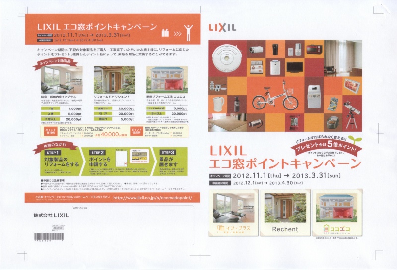 庭de暮らしアップキャンペーン CMでやってます 抽選 であたるかも知れないキャンペーン。 っサンルーム! 2014年1月31までの施工完了のお施主様...