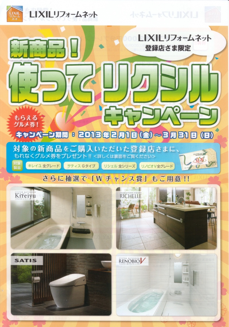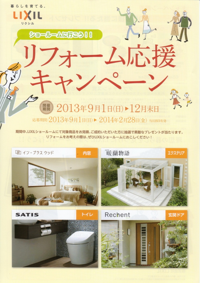 リフォーム応援キャンペーン リフォームをお考えの際は、ぜひリクシルショールームに行きましょう。 行ってみましょう!