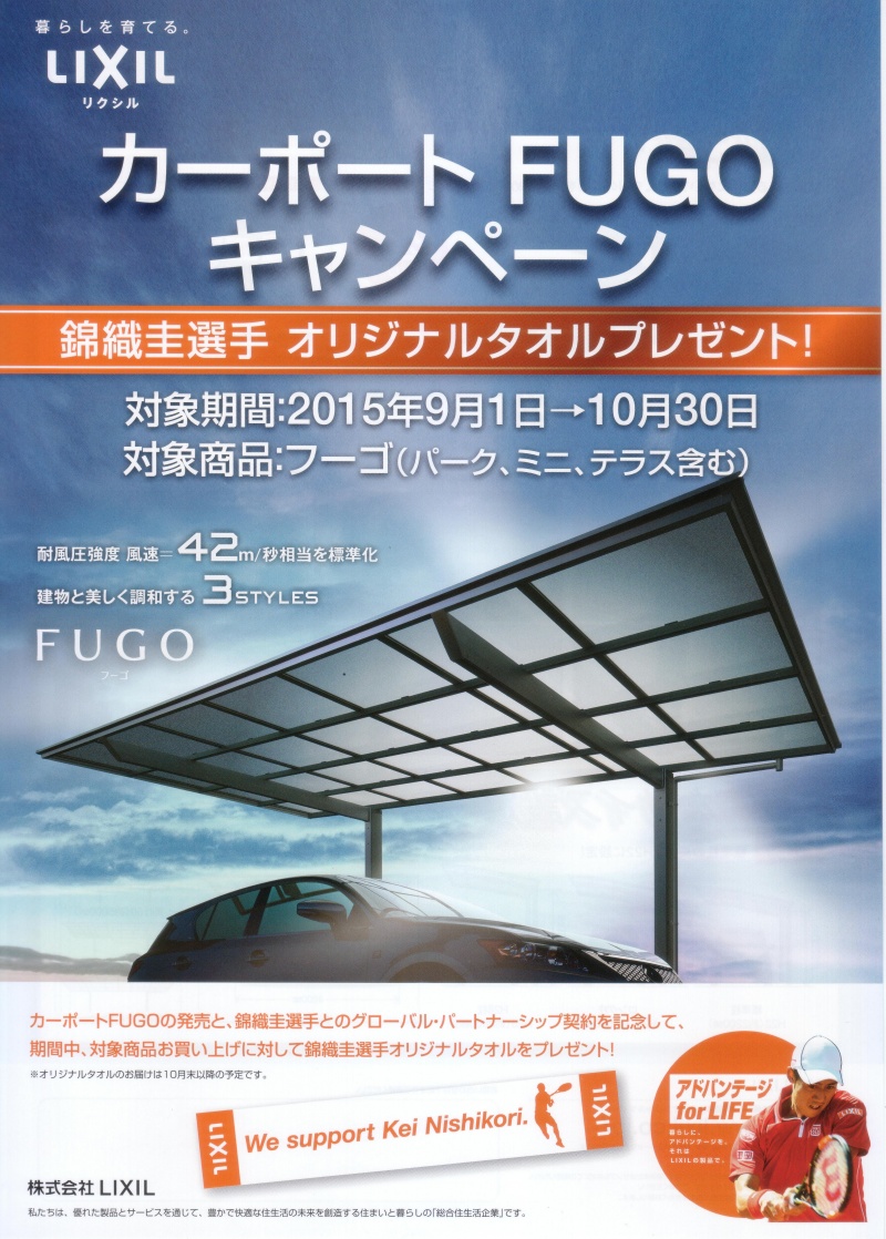 カーポート FUGO キャンペーン 2015年9月1日〜10月30日まで 各々クリックで拡大 新商品のカーポートです。 ここのところ自然災害が多いです...