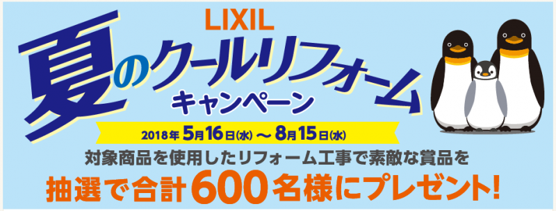 夏のクールリフォームキャンペーンが始まっています 対象商品を使用したリフォーム工事で 素敵な景品が抽選で当たります! キャンペーン期間 ...