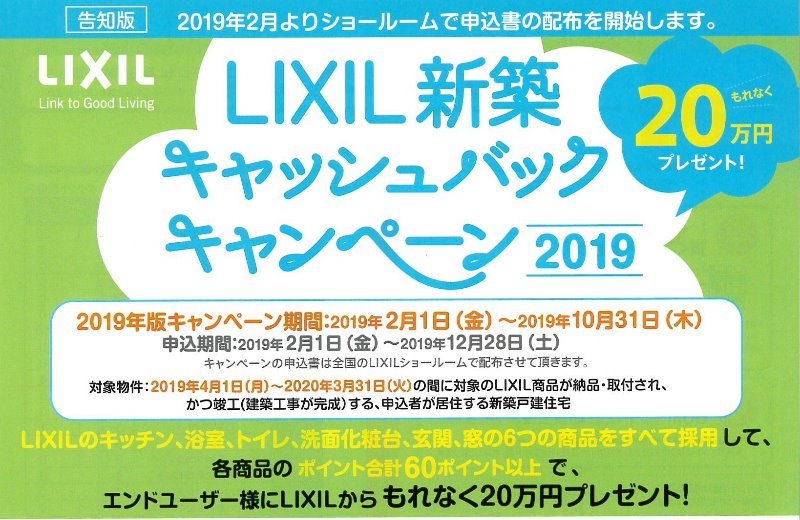 LIXIL新築キャッシュバックキャンペーン2019