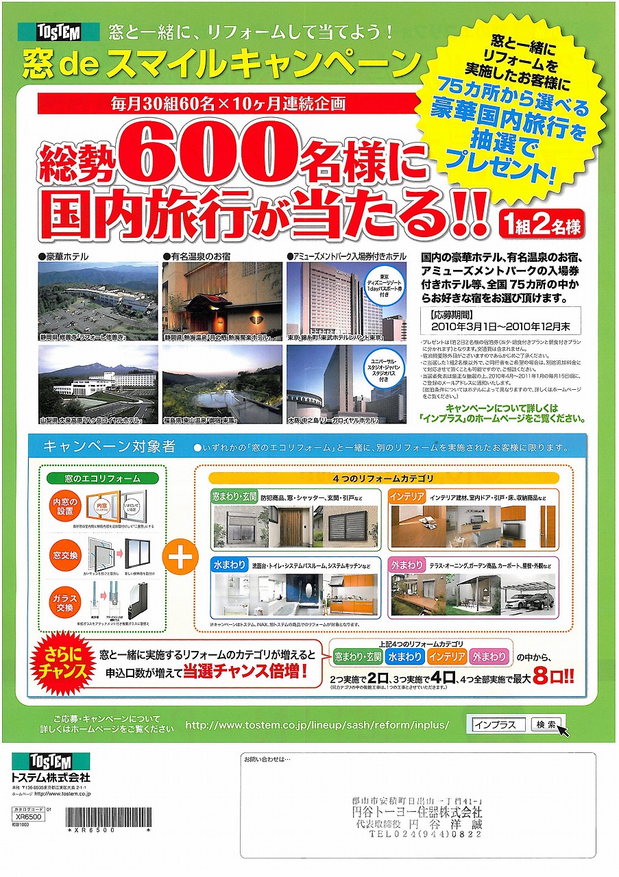 トステムでは2009年11月1日〜2010年2月末まで 「〜断熱内窓インプラスで窓のエコリフォームをしてみませんか 〜 窓deエコキャンペーン」を実施...