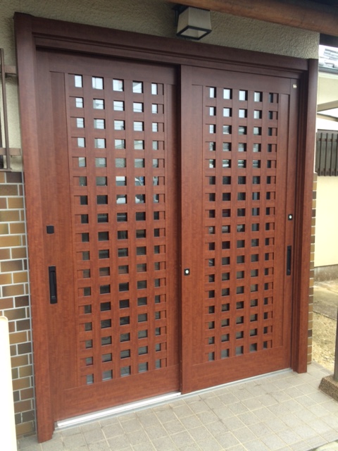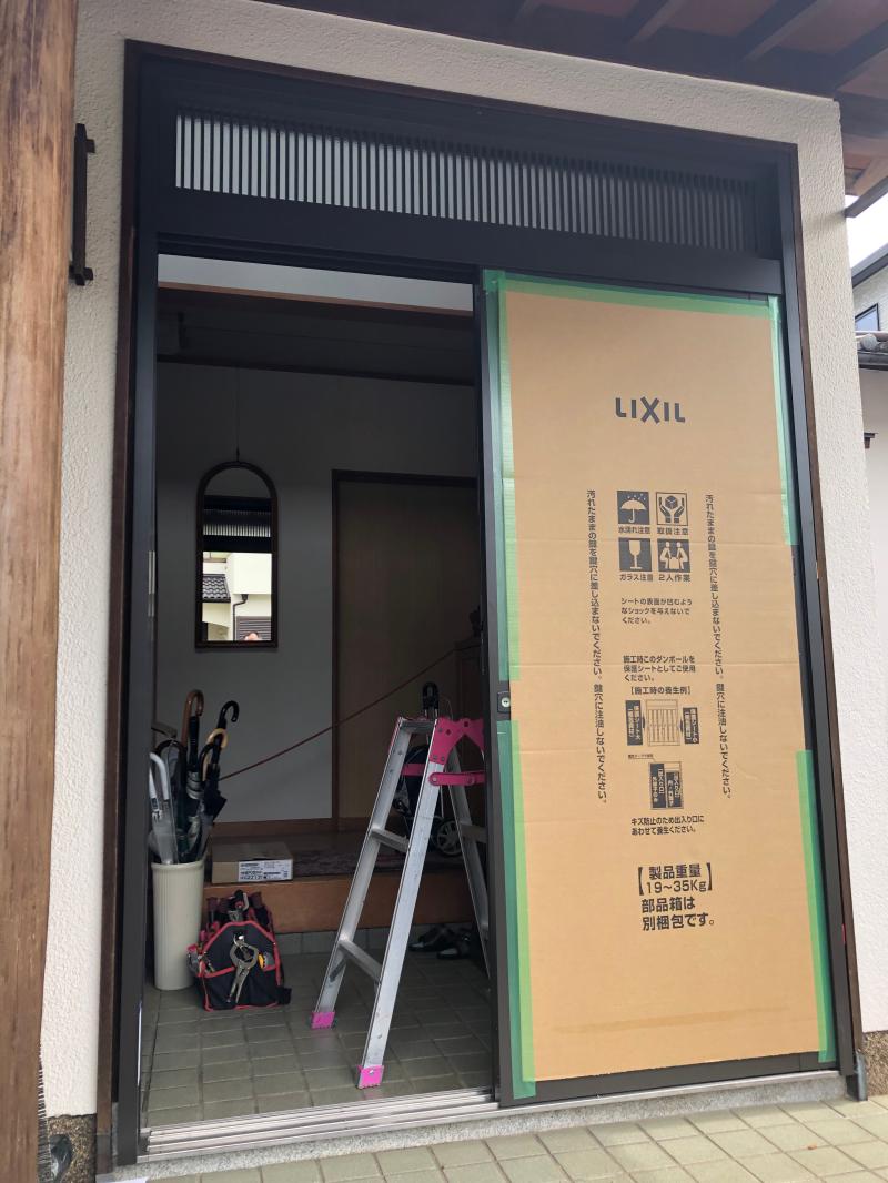 本日、市内某所にてリシェントの施工を行いました! 今ある既存の枠にカバーを行い取り付けます! すると... この通り納まりました! たった1日で 玄関...
