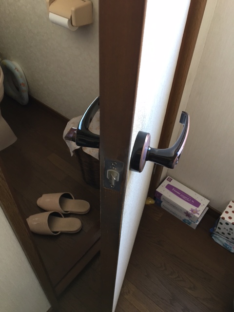 室内ドア リフォームの現場です。 【ビフォー】 古いトイレのドアです。 明るい光を採り入れるドアに替えたいという ご要望。 古い...