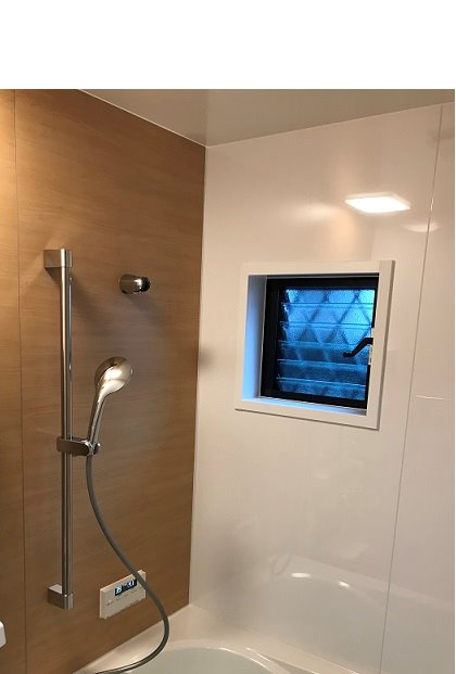 市内某所にて浴室リフォームを行いました。 同時に浴槽面の古い内倒しの窓を ルーバーの窓に取り替えました。 窓はLIXILのデュオPGで カラーはブラッ...