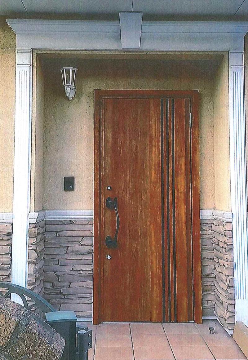 リシェント玄関ドアの交換工事です。 (施工前) 木製ドアの劣化、断熱、防犯のため 玄関ドアの交換希望のお客様です。 今...