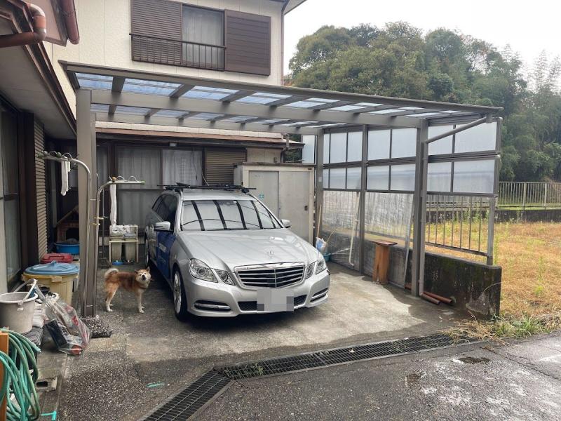 カーポートの施工例です。リクシルのスタイリッシュでべリエーション豊かなカーポートネスカF型2台用+サイドパネル仕様です。 施工前 片屋根タイプの波板屋...