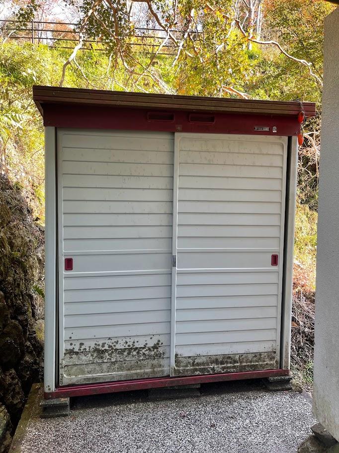 ある施設の物置ですが古くなったので交換したいと依頼がありました。 施工前 スチール製のヨド物置でした。 少々設置してる部分がこんな感じなのでほぼ同サイ...