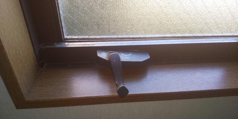 マドリエ横浜西 小窓の外錠取り付け工事 錠の付いていない窓に外錠を取り付けました 横浜トーヨー住器(株) 業務部施工 05.02.21