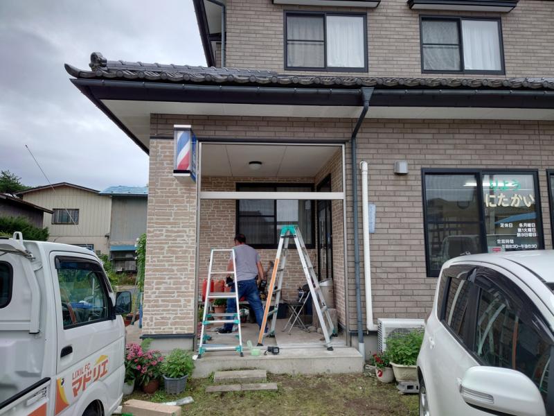 遠野市 N様邸 風除室 ツインガードⅢの設置工事を行いました! 床屋さんの店舗の入口に風除室を取付したいとのご要望でした。 1ヵ所は正面4枚建 1ヵ所...