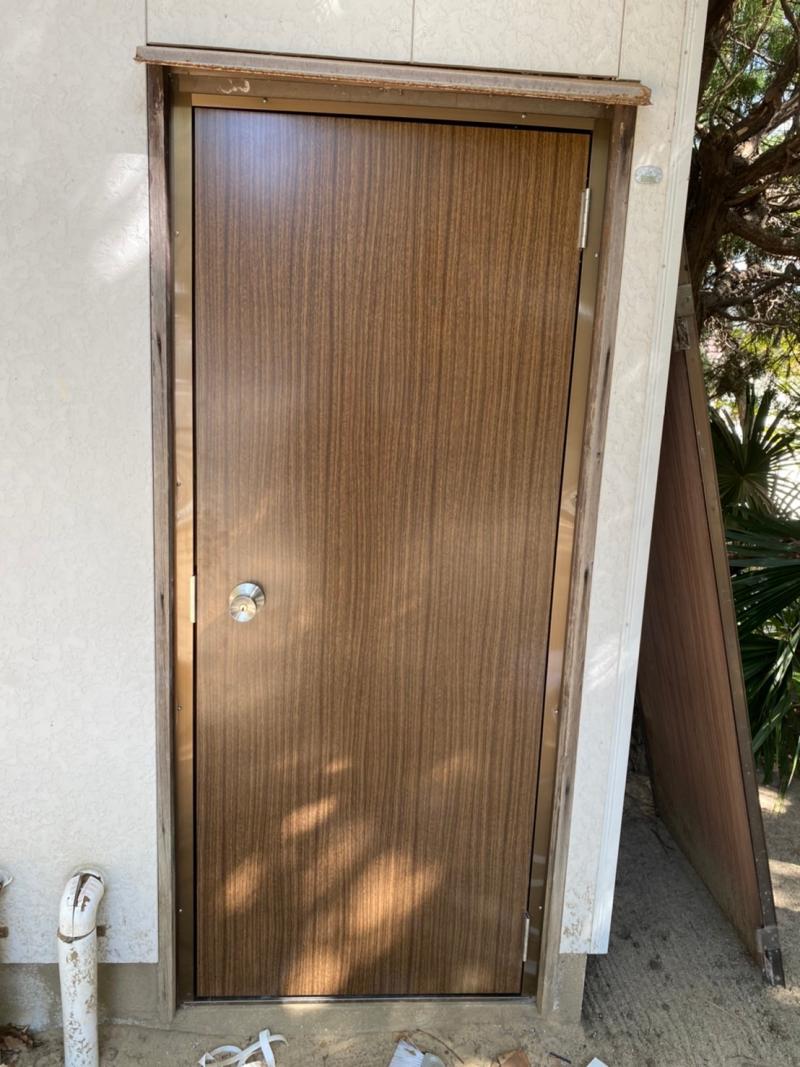🚪福岡市東区 倉庫 ロンカラーフラッシュドア取替工事🚪