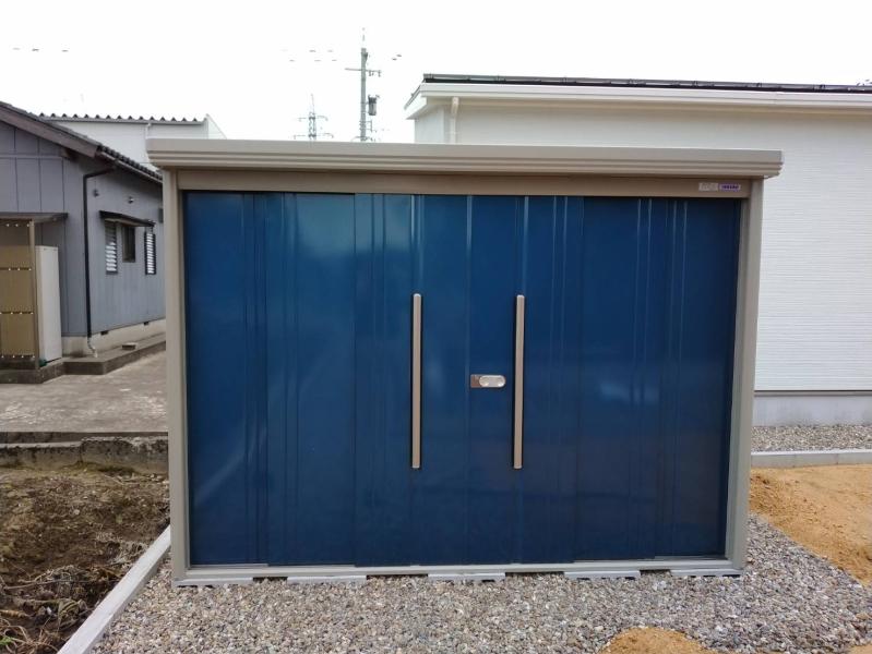 こんにちは! 先日物置の施工をさせて頂きました。 <施工後> <施工前> タクボ物置です。 鮮やかなブルーが印象的です。 把手付きの両引きの扉で開閉楽...