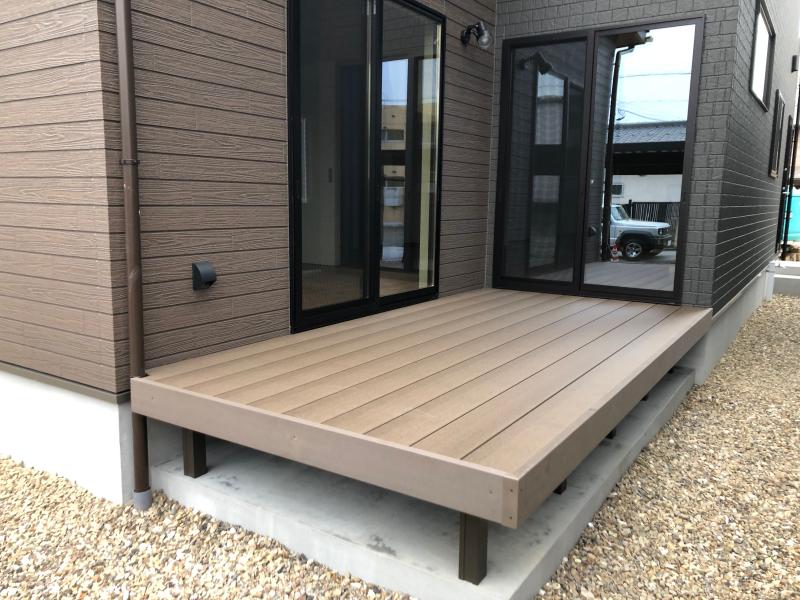 こんにちは! 先日ウッドデッキの施工をさせて頂きました。 <施工後> LIXILの樹ら楽ステージです。 ステップ付で上り下り楽々! 明るい木目色にステ...