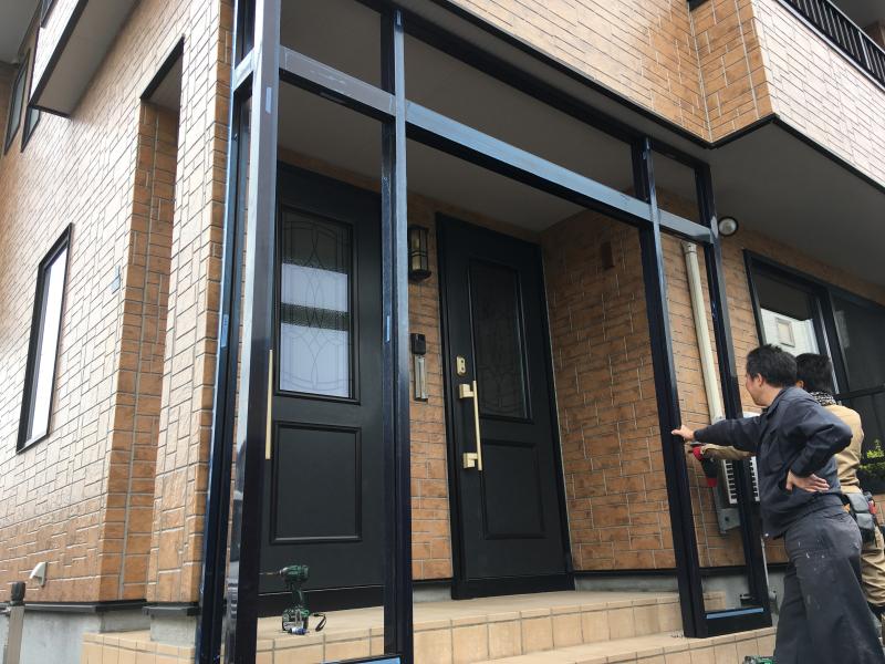 今日は風除室「ツインガードⅢ」の施工例をご紹介致します。 早速取付位置を確認していきます。 側面部分が納まりました。縦すべり出し窓がついています。 ガ...