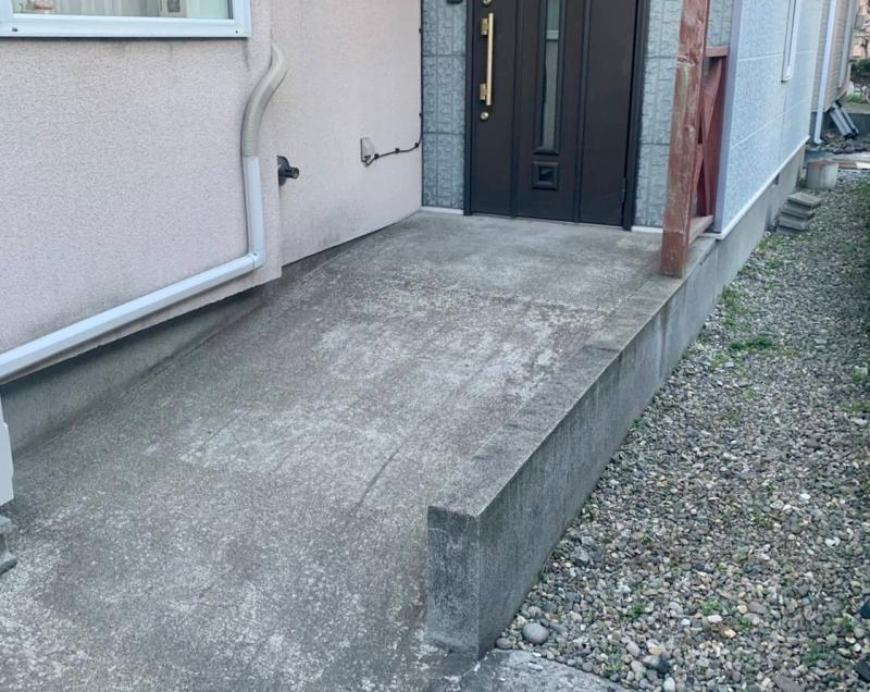 施工事例のご紹介です。 玄関前スロープに手すりをお取り付けさせていただきました。 〈before〉 〈after〉 スロープには支えるものがなく、手す...