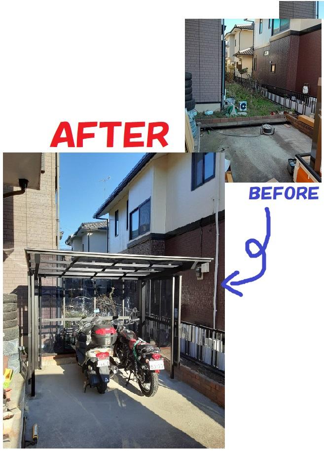 サイクルポートの取付工事をさせていただきました。 現場:小田原市 AFTER拡大 屋根が設置されて、雨風がしねげるようになりました。 商品:フーゴ デ...