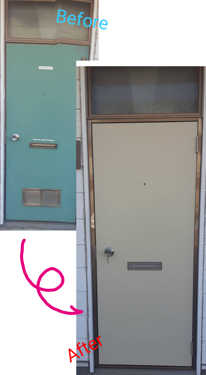 リシェントアパートドアの取付工事をさせて頂きました! 現場 : 大磯町 画像クリックで拡大出来ます★ BEFORE(拡大) 施工途中 AFTER 20...