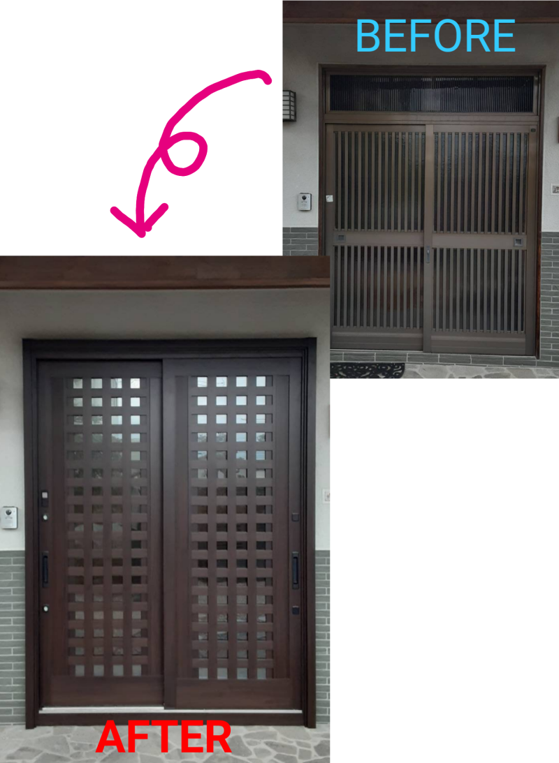 リシェント玄関引戸の取付を致しました! リシェントには、玄関ドアだけでなく、引戸もご用意しております。 引戸のたてつけが悪くなって、開けづらくなった、...