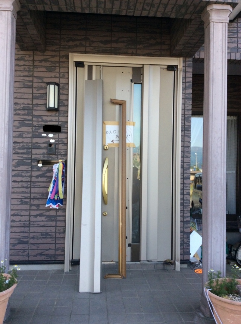 玄関引戸 リフォーム 木製の玄関引戸を、アルミ製の玄関引戸に! 今までは隙間風や、風が吹いたときにカタカタ戸が揺れてうるさかったみたいです。また、外...