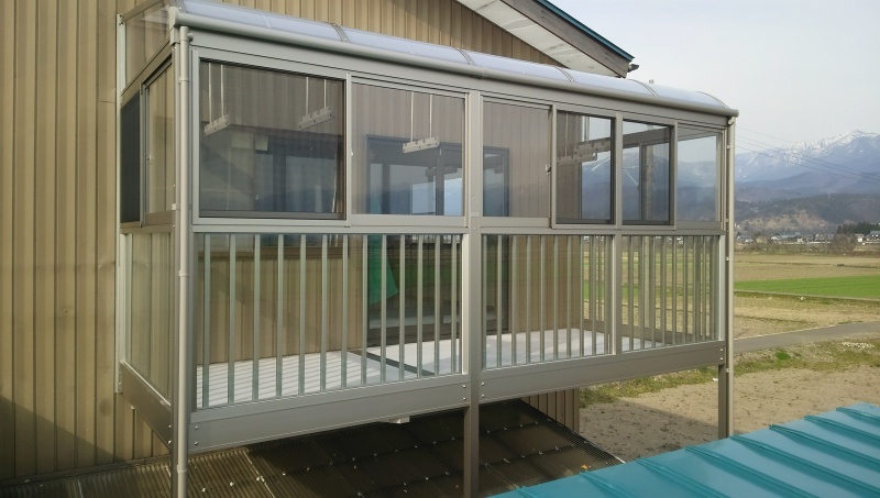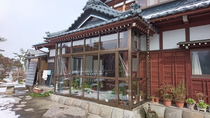 玄関風除工事 お花達も風除室内に入り、冷たい冬風から逃れ 「最高〜♪」と喋っているようです(^^) 強化ガラスにすれば雪が積もっても割れにくく安心...