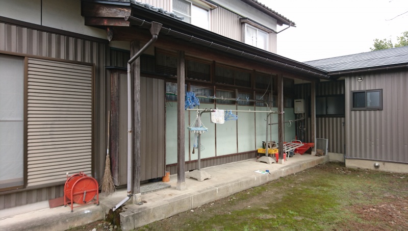 お宮さん 風除囲い工事 台風被害を受けたお宮さんを一新 折板屋根とポリカ波板囲いで、雨・風・雪から守られてます。