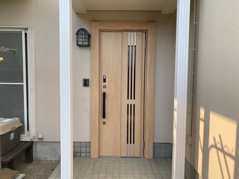 玄関ドアの入替工事をリシェントにて行いました。 1日で施工完了できる、業者の出入りの不安も少なく安心なリシェント。 前もって、施工シミュレーションでイ...