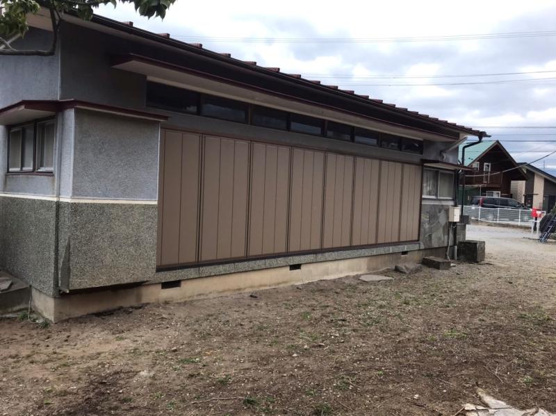 【施工後】 梁の側面に付いていたサポート柱を下から支えるタイプの物に交換しました。 こちらの方が雪に強く頑丈です。 【施工前】