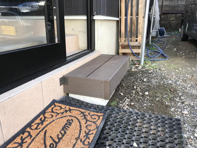 【施工後】 以前、風除室を施工したお宅にて、段差解消のためのステップを新設しました。