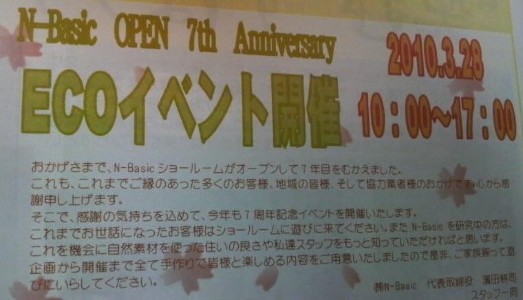N-Basic OPEN 7th Anniversary 2010年3月28日(日)AM10:00〜PM5:00 【ECOイベント開催】 場所:N-B...