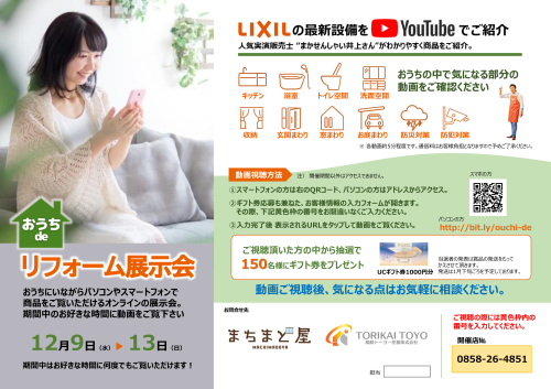 12月9日(水)~13日(金)までの期間、オンライン上で展示会を開催します。 LIXIL製の最新機器の動画を分かりやすくご説明いたします。 その中で気...