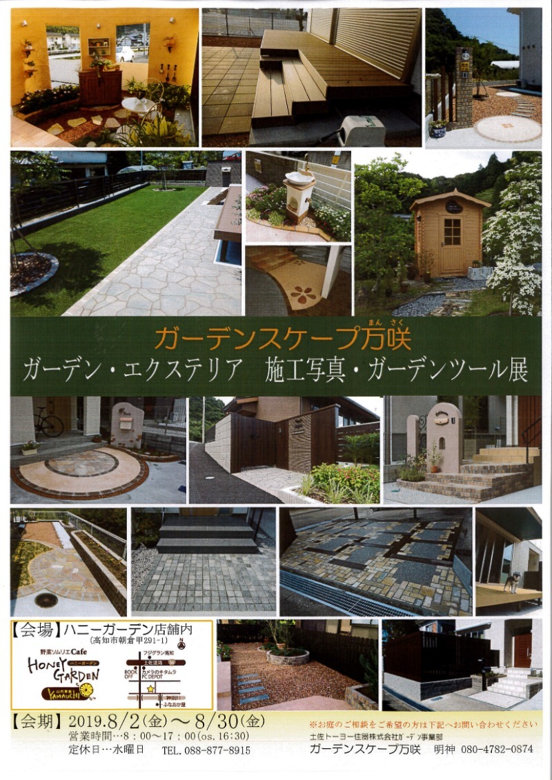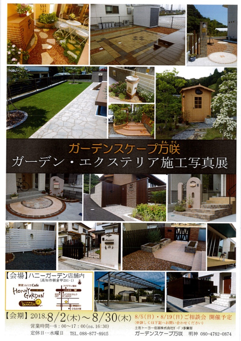 昨年好評だった 『ガーデンスケープ万咲 ガーデン・エクステリア・施工写真・ガーデンツール展』を高知市神田にある『野菜ソムリエカフェハニーガーデン』さん...