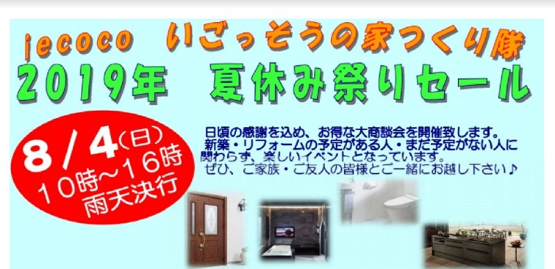 2019年夏休み新築・リフォーム相談のショールームイベント開催 iecocoいごっそうの家つくり隊