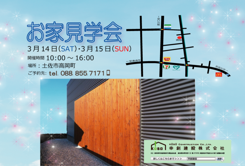 土佐市高岡町での完成見学会のご案内です。 【開催日時】2020.3/14(土).15(日) 10時~16時 【開催場所】土佐市高岡町 【...