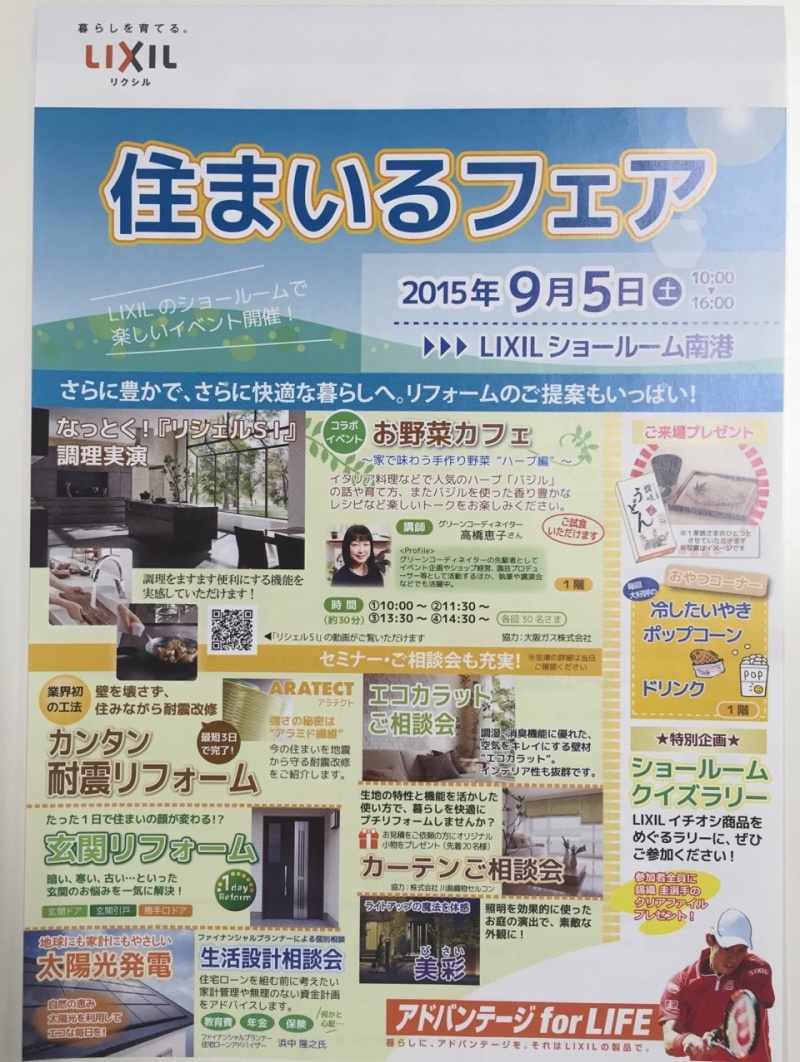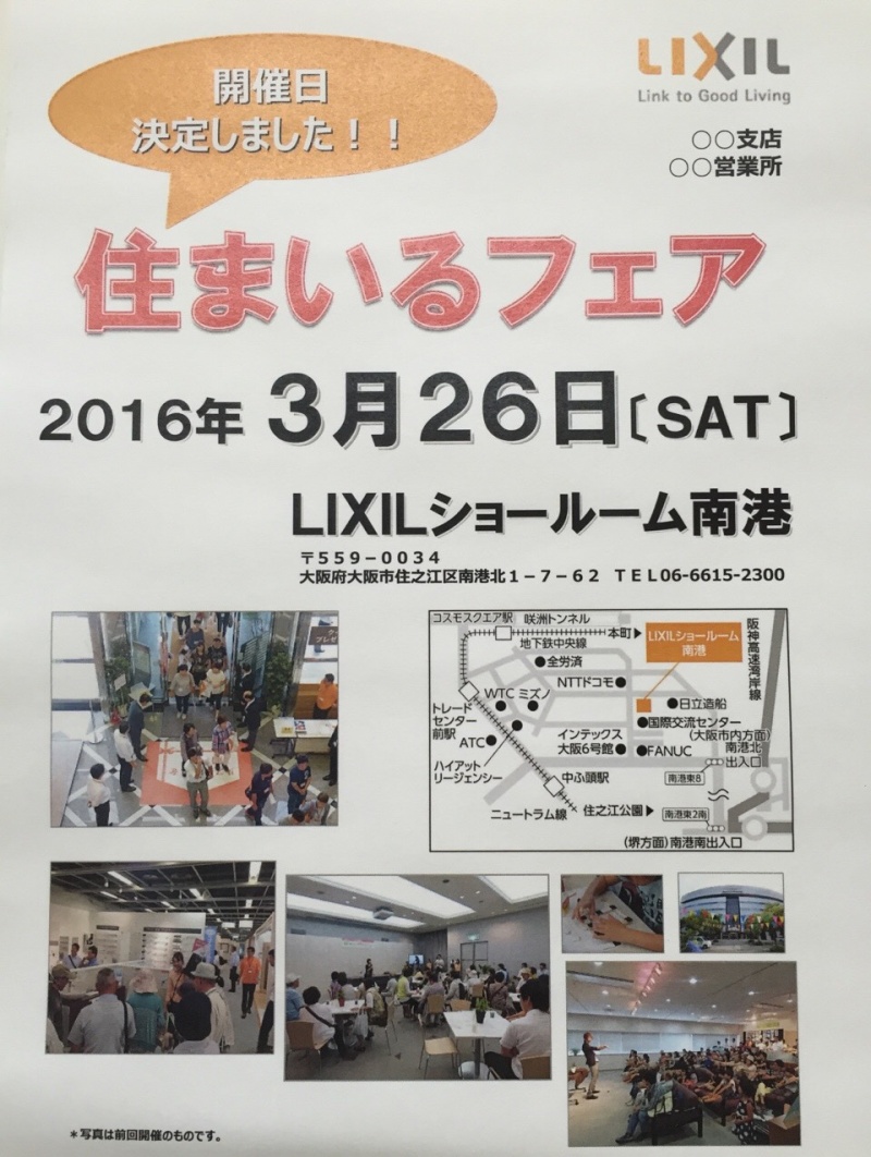 ≪ LIXILショールーム南港 イベント開催のお知らせ ≫ 今月26日土曜日、LIXIL南港ショールームにて 『住まいるフェア』を開催しております。 ...