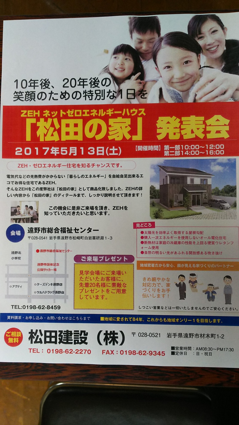 5月13日(土) 遠野市総合福祉センターにて 松田建設様の『ゼロエネルギーハウス 松田の家 発表会』が 開催されました。 ...