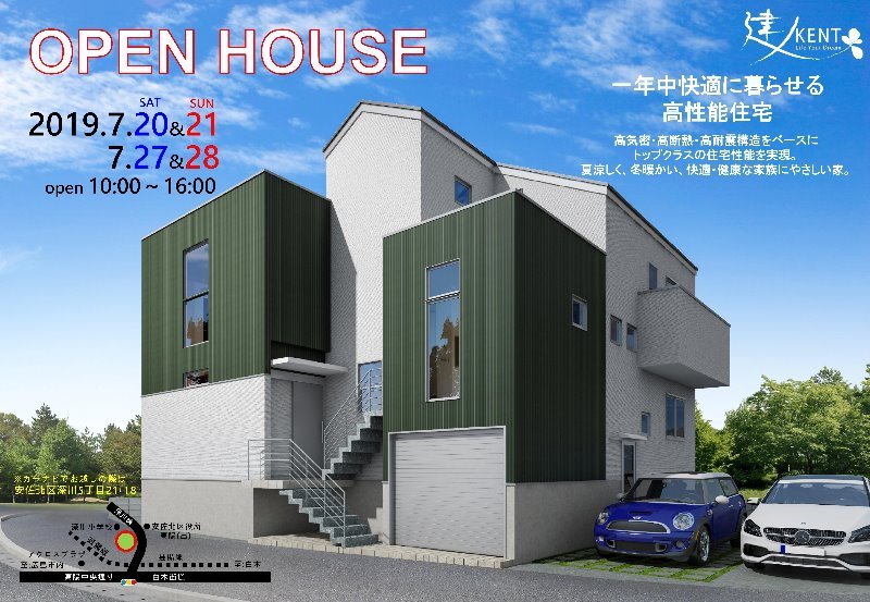 (有) 建人 様のオープンハウス 1年中快適に暮らせる 高性能住宅 高気密・高断熱・高耐震構造をベースに トップクラスの住宅性能を実現。 夏涼しく、冬...