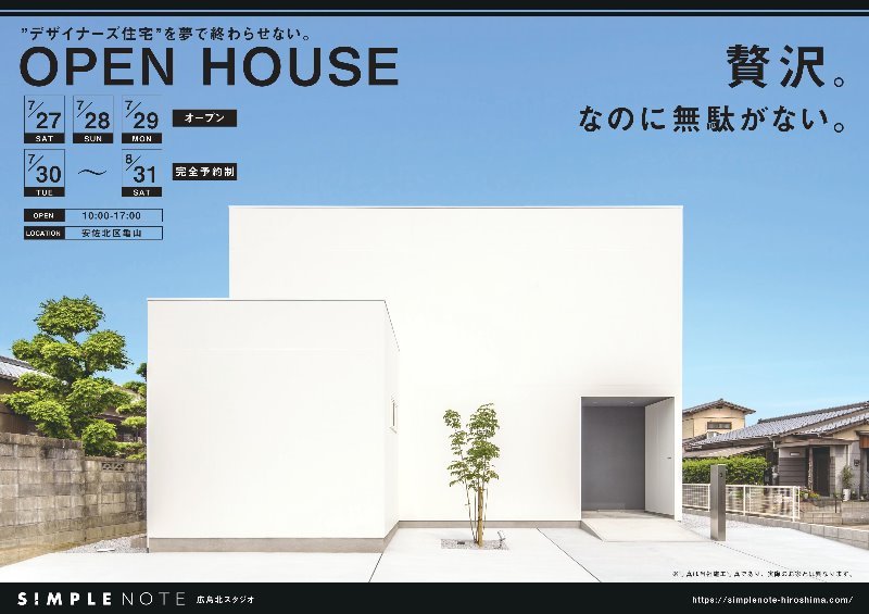 シンプルノート広島北スタジオ 様の オープンハウスのお知らせです 7月27日(土) 7月28日(日) 7月29日(月) 10:00〜17:00 場所:...