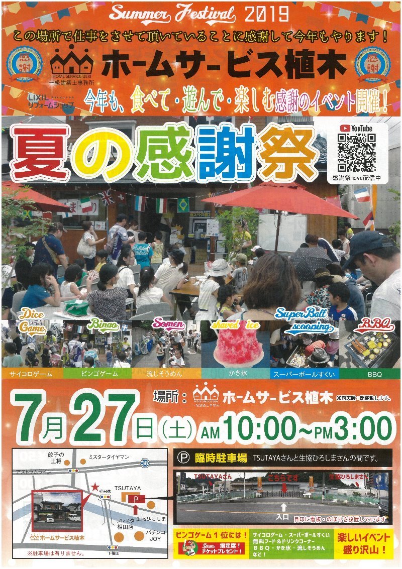 有限会社 ホームサービス植木 様 【夏の感謝祭】のお知らせです 食べて、遊んで、楽しむと書いてある通り、 流しそうめんやビンゴゲーム、サイコロゲーム、...