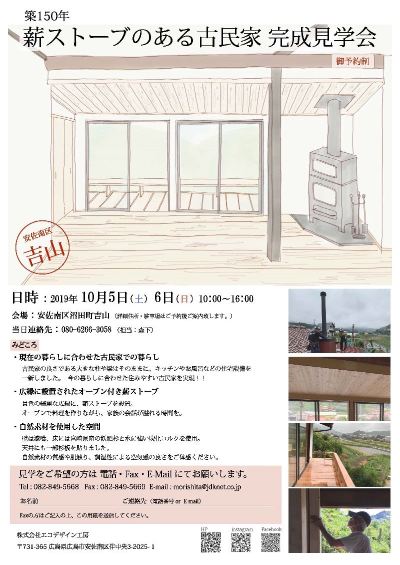 株式会社エコデザイン工房 様 築150年 薪ストーブのある古民家 完成見学会 のお知らせです 日時 2019年 10月5日(土)6日(日) 10:00...