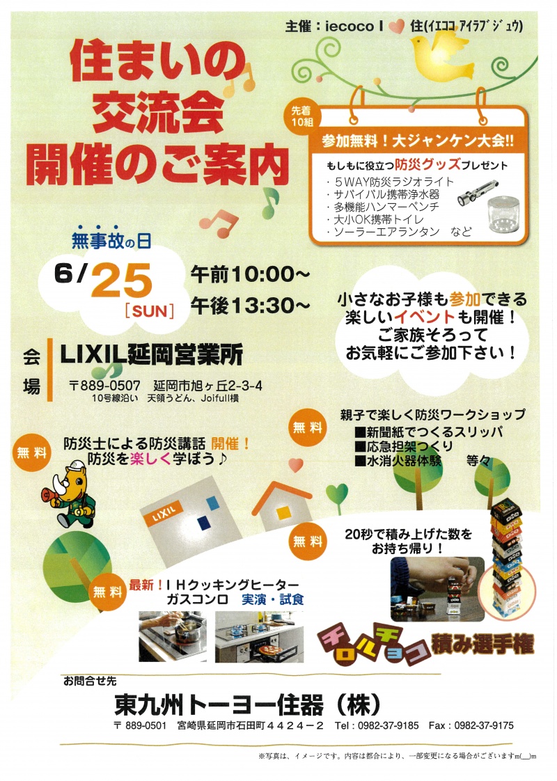 宮崎県延岡市 6月25日(日) 住まいの交流会開催のご案内 〜防災を楽しく学ぼう♪〜
