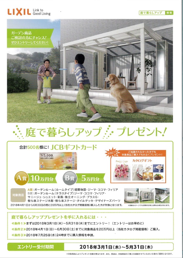 ■■□———————————————□■■ テラス商品ご検討の方に ☆☆チャンス☆☆ 合計500名様に最大10万円分 ギフトカードプレゼントします! ...